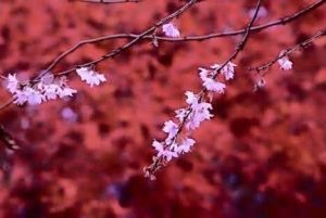 頬杖ついたその姿、観音様が身近になった瞬間にキラリとハギのピンクが輝きました。